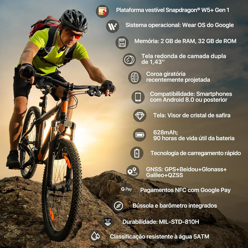 Processador: Snapdragon W5+ Gen 1 Wearable Platform
