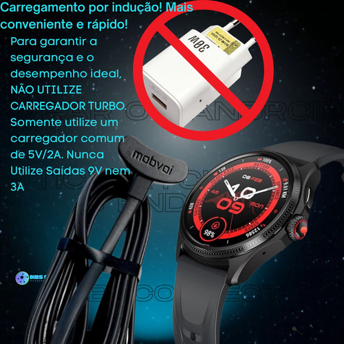 A primeira carga do seu smartwatch deve ser de 4 horas e as demais, por +- 1 hora.